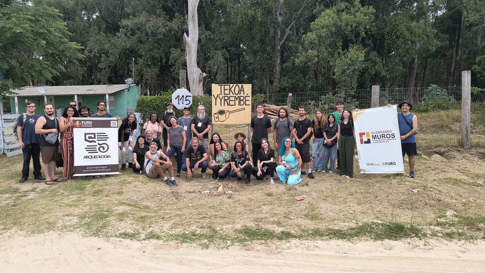 No dia 8 de dezembro de 2025 discentes e docentes da FURG realizaram uma vivência na Tekoa Y'Yrembé (Balneário Cassino, Rio Grande/RS), no âmbito da 1ª Semana de Extensão Universitária no ICHI, onde puderam conhecer um dos projetos de extensão que o Curso de Arqueologia vem desenvolvendo junto a esse coletivo indígena.